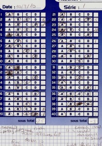 After forty such questions, the answers suddenly flash up on the screen, and you scramble to compare them to what you’ve marked. Which is hard because you’ve had to scratch a lot of things out since you changed your mind at least twice during every question and there is no eraser on the pencil you were given.